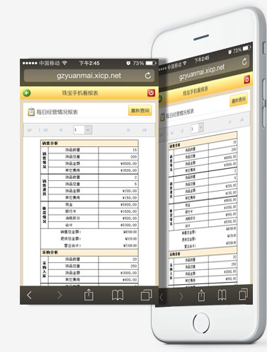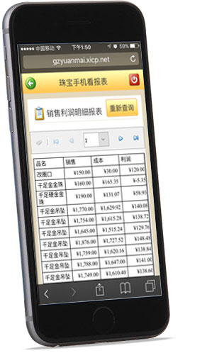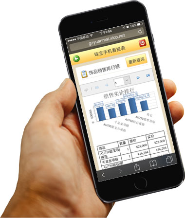 概況:傲藍珠寶手機看報表軟件手機看報表應用于查看每天、每周、每月的營業收入,采購情況,實時庫存以及每天的金價變動等;通過手機看報表系統遠程遙控查看實時了解各分店的營業情況,各分店的員工銷量情況,無論出差還是在家,都可實時了解員工的工作情況,做到心中有數,店鋪情況盡在掌握中。