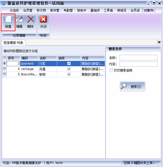 1、點擊【基礎資料】【短信模板】就會彈出【新建】的界面,如圖: