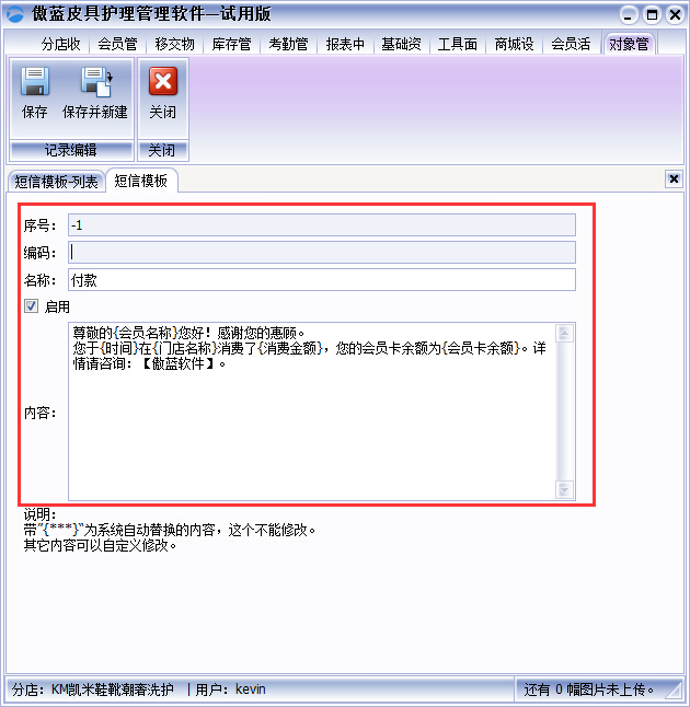 傲藍皮具修理店連鎖軟件支持利用系統群發短息給客戶,一般支持通知類短信內容下發,如:通知客戶取衣、發送生日祝福、節日溫馨問候或消費通知等。那么在軟件中具體是怎么操作的呢?