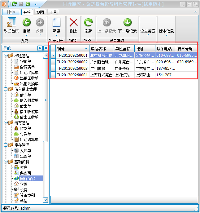 傲藍(lán)舞臺租賃管理軟件提供同行商家信息有效管理,在軟件上登記同行商家的詳細(xì)信息方便管理。